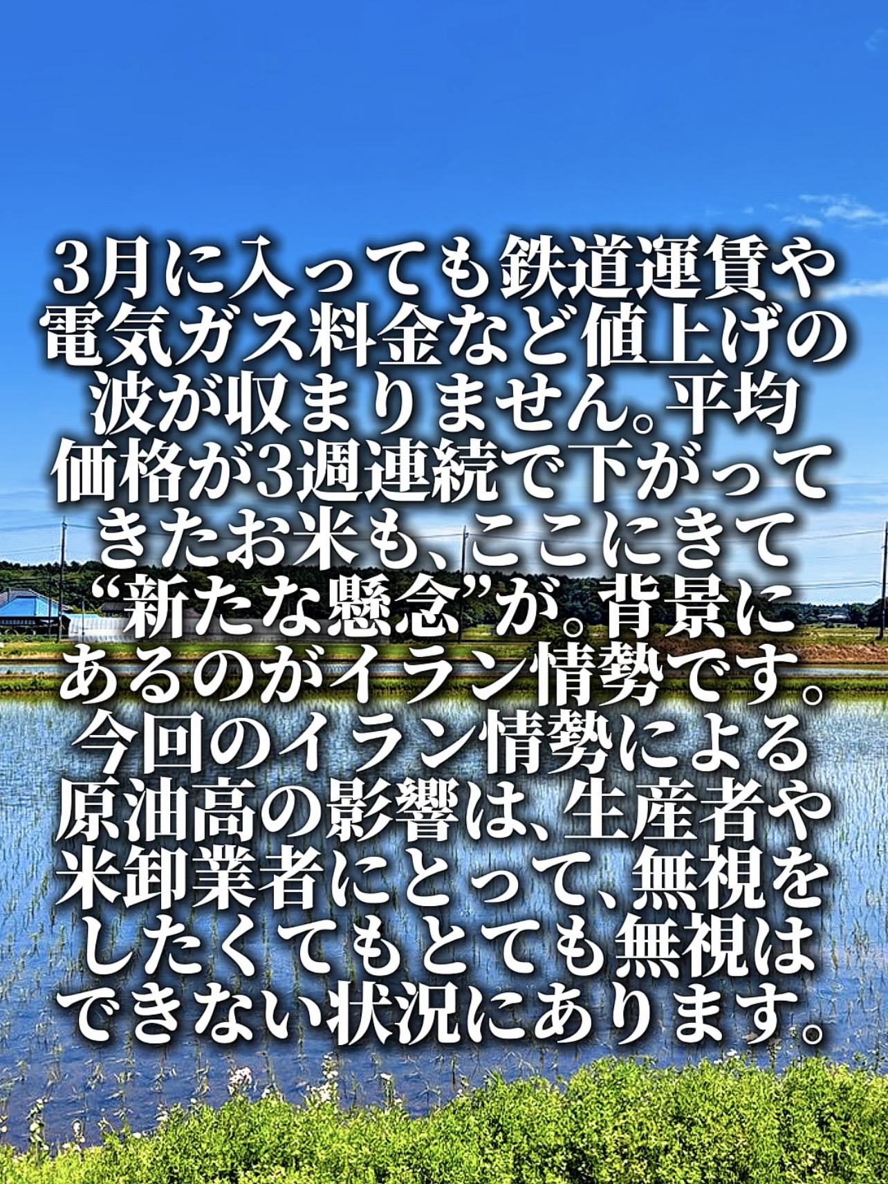 イラン情勢による影響にも 今後注目していかざるを得ません🌾